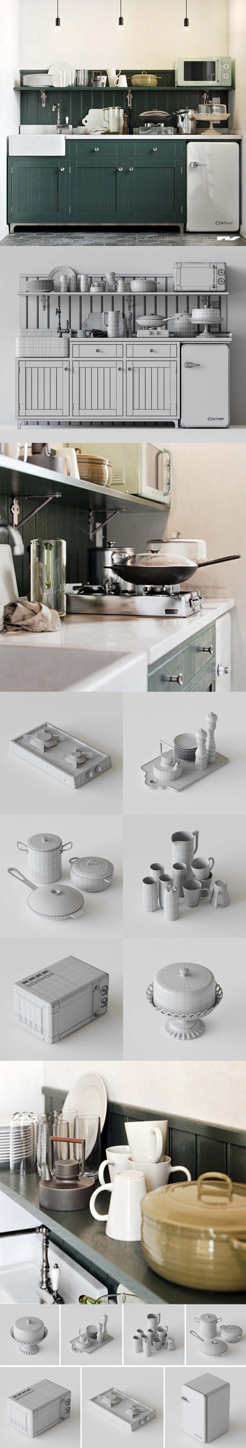 The resource is available for free and can contain different kitchen 3d objects that can serve as focal point models or complementary models for your kitchen designs. You can use each ware separately or use them collectively for your personal and commercial interior design in no time. You also get to have them in FBX, Max, and Obj formats.